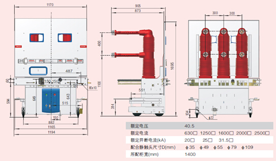 ZN85-40.5断路器外形尺寸图