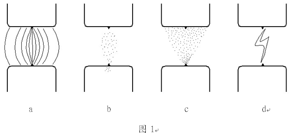图1a 触头上存在宏观的微凸点,电场在此集中。